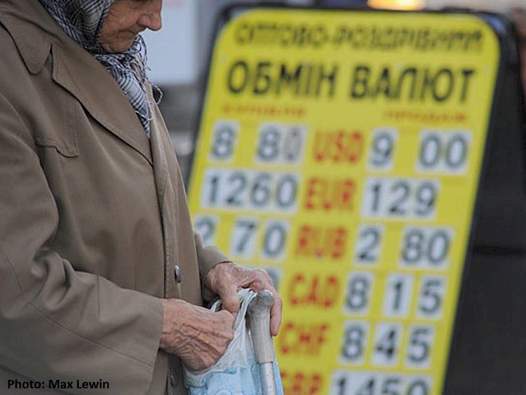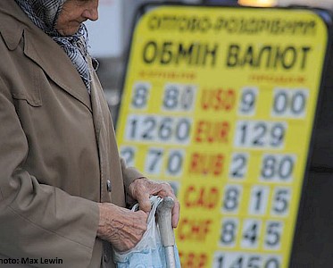 Der Griwna, die ukrainische Währung fällt. In Panik versuchen Menschen ihr gespartes Geld von der Bank abzuheben, um es in Euro oder Dollar zu tauschen oder es zu mindest zu Hause sicher zu wissen. Einige Banken haben vorübergehend geschlossen, andere zahlen kein Geld mehr aus. Vor den Geldinstituten bilden sich lange Schlangen. Die Spannung und die Ungeduld wachen, denn jeder weiß, hier handelt es sich nicht um eine vorübergehende Krise, die Ukraine wankt in eine trostlose Zukunft.
