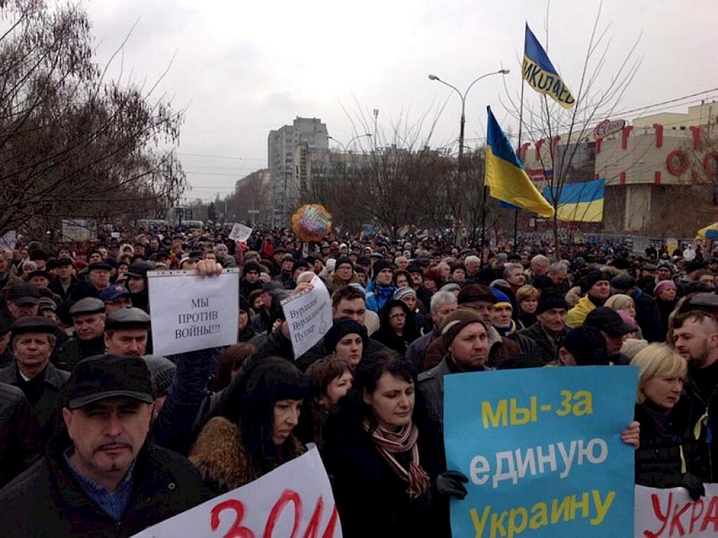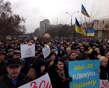 Viele Russen haben Verwandte in der Ukraine, Ukrainer in Russland. In Moskau wurde mit den Worten gegen einen Krieg demonstriert: „Warum wollen wir gegen unsere Brüder und Schwestern schießen?“ Die meisten Demonstranten wurden gleich von Sicherheitskräften entfernt. Die Russisch Orthodoxe Kirche hat nun aufgefordert: „Lasst uns für den Frieden beten!“
