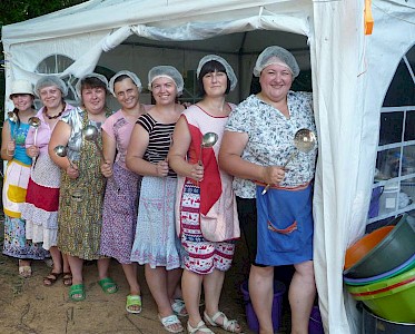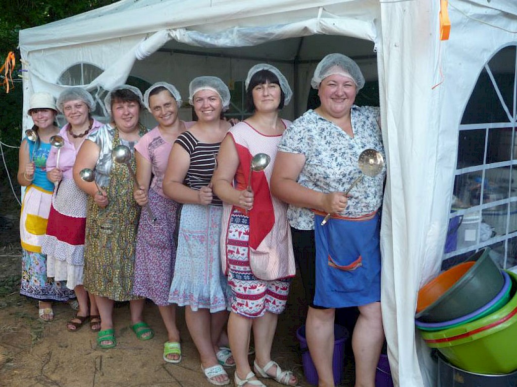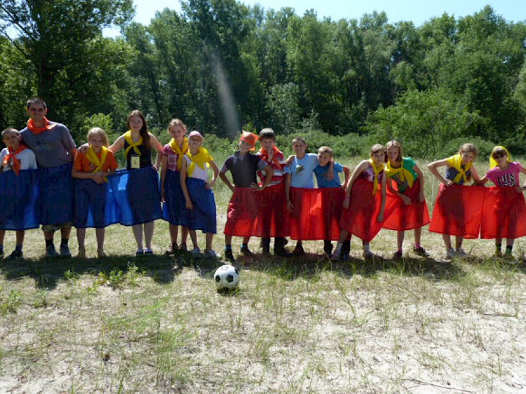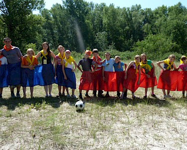 Am letzten Tag im Camp versuchen alle Kinder nachzuholen, was sie in den vergangenen Tagen noch nicht genossen haben. Vom Fußballfeld klingen laute Begeisterungsschreie herüber. Die Kinder sollen zu zweit in riesigen Fußballs-Shorts Tore schießen. Das erfordert sehr viel Geschicklichkeit und Konzentration. Andrej macht das sehr viel Freude. Andere Kinder haben beim Bogenschießen den Bogen raus. Sie werden dabei von unseren „Jungen Missionaren“ angeleitet.