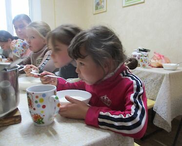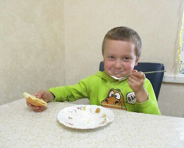 In diesen Tagen treffen in unserem Zufluchtsort in Odarjewka die ersten Kinder bereits am Morgen ein. Bei ihnen ist wieder einmal der Unterricht in der Schule ausgefallen, weil Lehrer krank sind oder weil keiner so richtig weiß, wie er mit den neuen Corona-Regeln umgehen soll, die sich jeden Tag ändern.