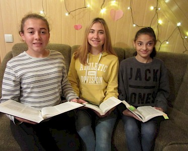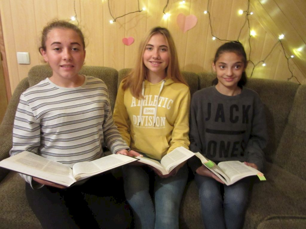 „Was ist das am meisten verkaufte Buch auf der ganzen Welt?“ Wie jeden Samstag haben sich zwei Gruppen von Mädchen in unserem Glaubenskurs „In Seiner Nähe“ versammelt. Wika Gusenok, die beide Kreise leitet, erklärt den Mädchen heute, wie die Bibel aufgebaut ist und wie man sie gewinnbringend lesen kann.