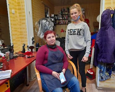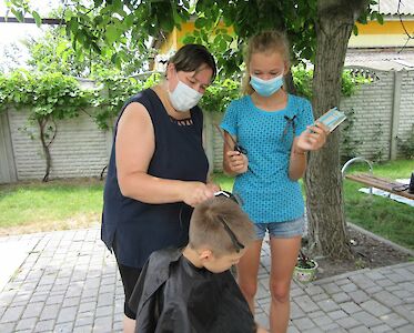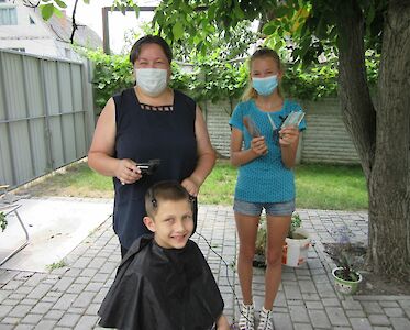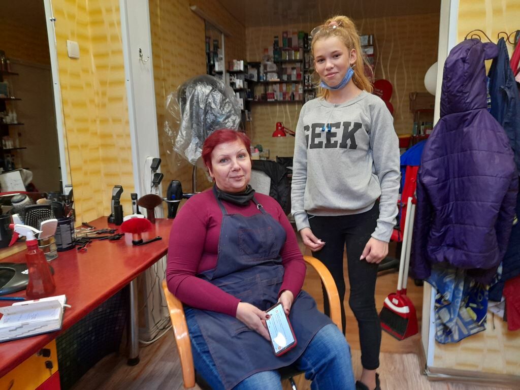 Soja Tschechowskaja, die Leiterin von unserem „Tageskinderheim am See“, hörte sich um und fand Hanna Losowaja, die einen Frisör Salon in Swetlowodsk leitet, die sich bereit erklärte, Sonja zu helfen.
