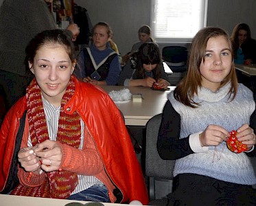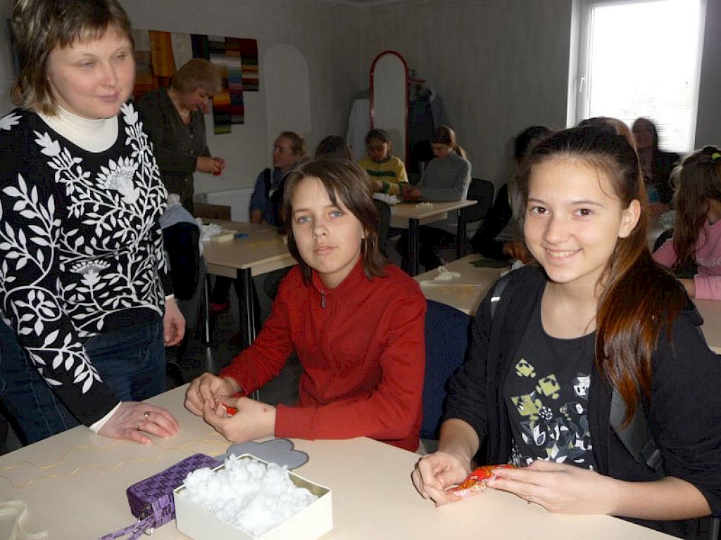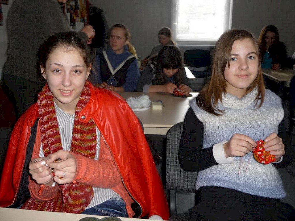Im Anschluss geht es in die „Lehrwerkstatt für Mädchen“, denn heute dürfen sie zum ersten Mal an einer Nähmaschine arbeiten. In einer ersten Übung müssen gerade Linien und ein Kreis genäht werden, eine schwere Übung für die erste Unterrichtsstunde. Aktuelles vom Tag Im Frühling werden jedes Jahr die schlechten Straßen notdürftig repariert. Die meisten Straßen in der Ukraine befinden sich in erbärmlichem Zustand. Da reißt der Winter immer tiefe Löcher in den dünnen Asphalt. Wegen der schwierigen Wirtschaftslage wird in diesem Jahr nur an den wichtigsten Straßen gearbeitet.