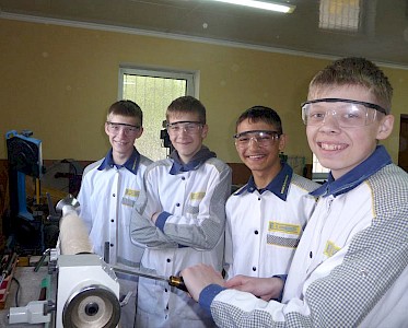 Heute ist ein ganz besonderer Tag in unserer „Lehrwerkstatt für Jungen“. Staunend stehen die Lehrlinge vor einer neuen Drehmaschine, die ihnen von der Andreas Gemeinde in Osnabrück geschenkt wurde. In den vergangenen Tagen haben sie von Oleg Kurbatow, ihrem Ausbilder, Seminare über die neue Maschine erhalten.