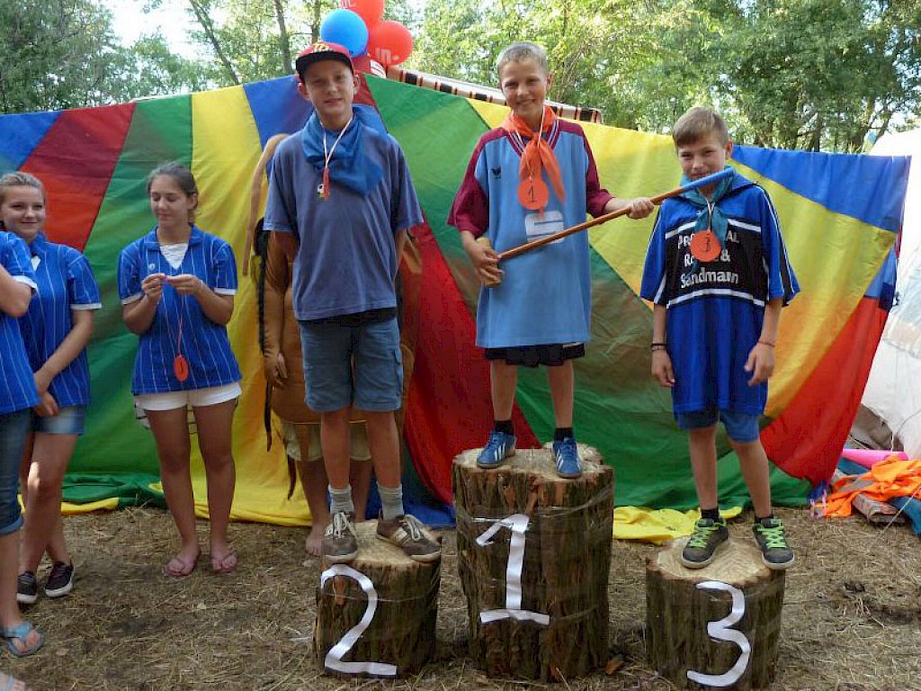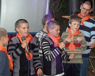 „…und der Gewinner der Goldmedaille ist Yura!“ – stolz betritt er das Siegerpodest. Er ist heute einer der Gewinner bei unserer Lagerolympiade und alle klatschen begeistert Beifall. Bei verschiedenen sportlichen Wettkämpfen lernen die Kinder ihre Willenskraft zu zeigen. Yura ist zum ersten Mal beim Sommerlager dabei. Wegen seiner geringen Körpergröße wird er in der Schule oft gehänselt. Aber hier im Camp behandeln sich die Kinder mit Respekt und haben die Chance, ihre unterschiedlichen Fähigkeiten zu trainieren. Hier können sie strahlende Olympiagewinner werden und bekommen ermutigende Anerkennung.