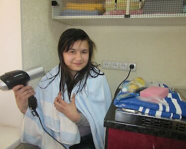 Nach dem Duschen stehen sie oft lange vor dem Spiegel, föhnen ihre Haare, betrachten sich von allen Seiten. Nach unserem Duschtag fühlen sich unsere Gäste viel besser.
