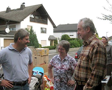 Es ist gut, dass wir mit dieser schweren Aufgabe nicht alleine gelassen werden. Russische, ukrainische und deutsche Freunde helfen uns stundenlang Kartons zu tragen. Dann ist es so weit. Der letzte Karton wird in den Auflieger gewuchtet.
