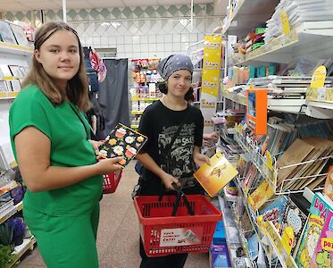 Vor jedem neuen Schuljahr kaufen sie Schulmaterialien. Außerdem warteten unsere Mitarbeiter bereits sehnsüchtig auf gespendete Stifte, Federmäppchen und Schulranzen, die wir mit unserem Hilfsgütertransport in die Ukraine geschickt haben.