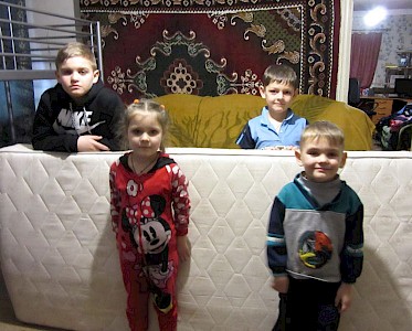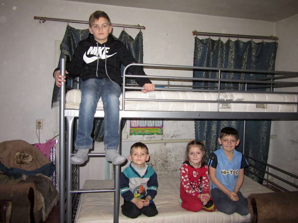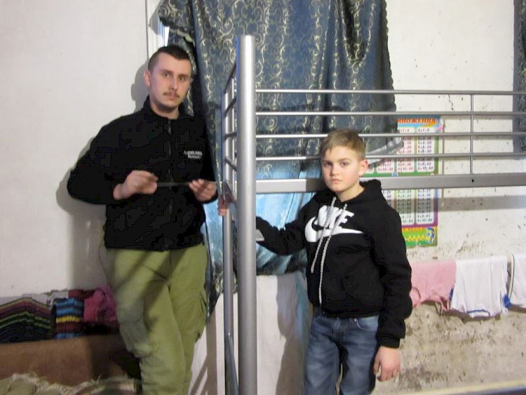 „Tante Luda, das Bett ist ja riesig. Da hab ich richtig viel Platz!“ Heute ist ein Festtag. Unsere Mitarbeiter bauen ein Stockbett für Wanja und Sascha auf, die in ihrer neuen Familie kaum Platz zum Schlafen hatten. Nun haben die beiden Jungen nicht nur eine neue Familie, sie haben auch einen eigenen Schlafplatz.