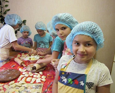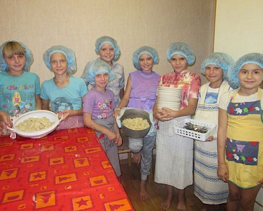 „Was feiern wir denn heute?” Marina ist ganz aufgeregt, denn sie hat von Natascha Mitina gehört, dass die „Supergirls“ ein ganz besonderes Essen kochen, Wareniki mit Kartoffeln. Wareniki sind gefüllte Teigtaschen, das Lieblingsessen der meisten unserer Jungen und Mädchen.