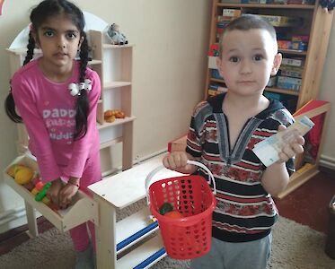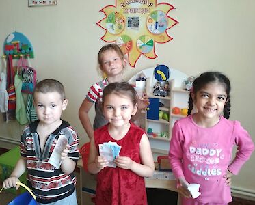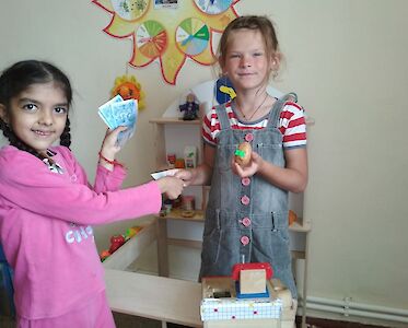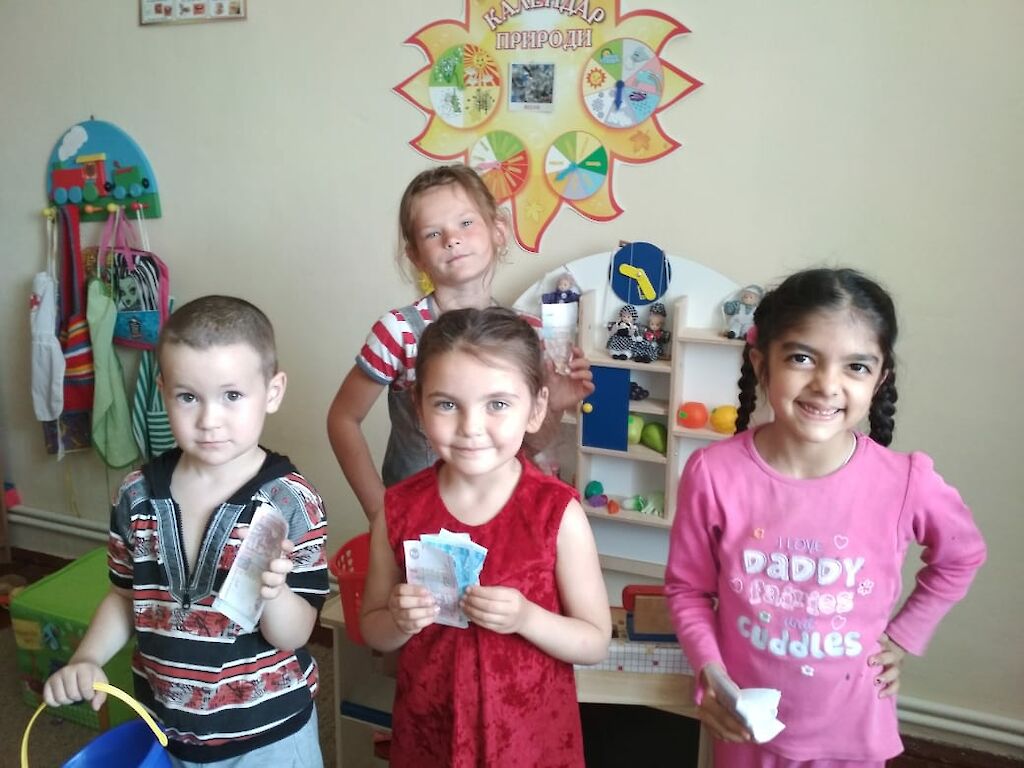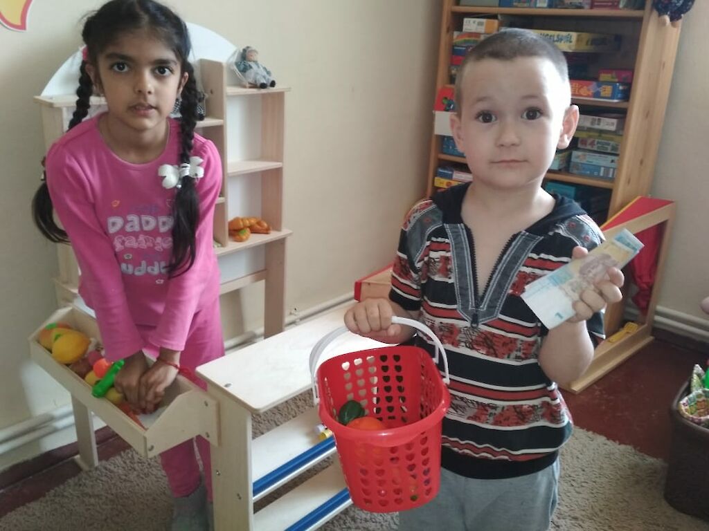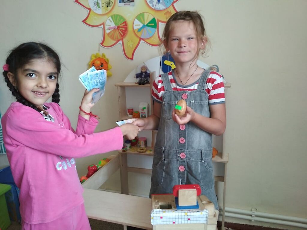 In Rollenspielen lernen die Kinder im „Spatzennest“ Dinge aus ihrem Alltag. Dascha ist heute eine Krankenschwester, die unsere Kinder untersucht. Timofei versucht sich als LKW Fahrer. Raia steht in der Küche und Nastja ist unsere Verkäuferin.