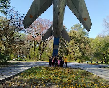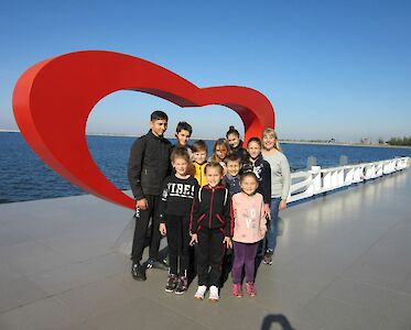 „Tante Aliona, das Denkmal habe ich noch nie gesehen!“ Staunend stehen die Kinder von unserem „Tageskinderheim am See“ vor einer riesigen Statue, die an die Gründung der Stadt Swetlowodsk erinnert.