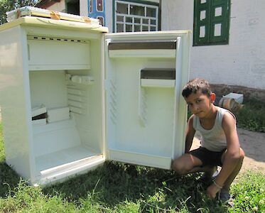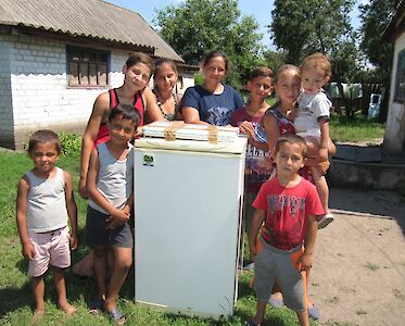 Jemand gab ihr die Telefonnummer von unserem Büro und wir haben sie besucht. Wenige Tage später war es so weit, wir brachten ihr einen gebrauchten Kühlschrank, den sie sich so sehr gewünscht hat.
