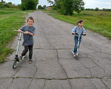 Heute ist ein wunderschöner Tag. Es ist warm, der Himmel ist blau, die Sonne scheint. Als unsere Kinder in unseren „Zufluchtsort“ in Odarjewka kommen, sind sie überrascht, dass bereits einige gepackte Taschen vor der Tür stehen.