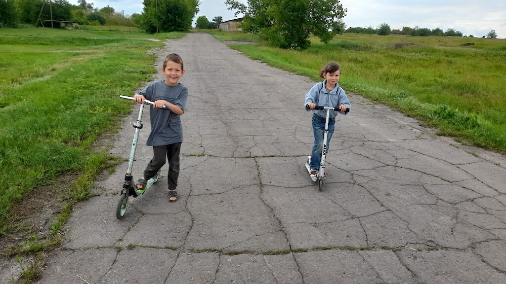 Heute ist ein wunderschöner Tag. Es ist warm, der Himmel ist blau, die Sonne scheint. Als unsere Kinder in unseren „Zufluchtsort“ in Odarjewka kommen, sind sie überrascht, dass bereits einige gepackte Taschen vor der Tür stehen.