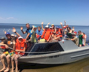 Wie an jedem Morgen werden wir von warmer Sonne geweckt. Viele unserer Gäste verbringen lange Zeit im Fluss. Die meisten von ihnen tragen zum ersten Mal einen Badeanzug, eine Badehose, da es in ihrem Dorf keine Bademöglichkeit gibt. Einige versuchen schwimmen zu lernen. Doch der Höhepunkt am Vormittag ist eine Bootsfahrt auf dem Fluss. In den vergangenen Tagen haben wir viel über den „guten Hirten“ gehört. Doch wie können wir ein Teil seiner Herde werden, wie kann er mein guter Hirte werden? In kleinen Gruppen sitzen wir am Kreuz, denken darüber nach, wie sehr der Hirte seine Schafe liebt. Er verteidigt sie, wenn Wölfe eine Herde angreifen, selbst wenn es sein Leben kostet. Jesus ist der gute Hirte, der für uns gestorben ist, der durch seinen Tod eine Brücke zu Gott geschlagen hat. Bis spät in die Nacht beten Mitarbeiter mit Kindern, die ihr Leben diesem guten Hirten anvertrauen wollen.
