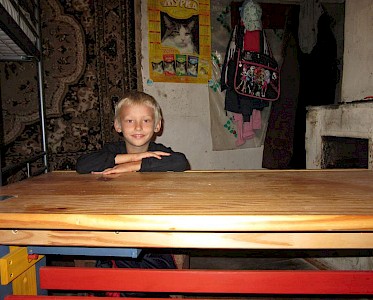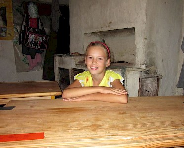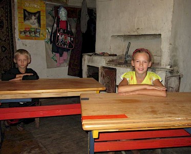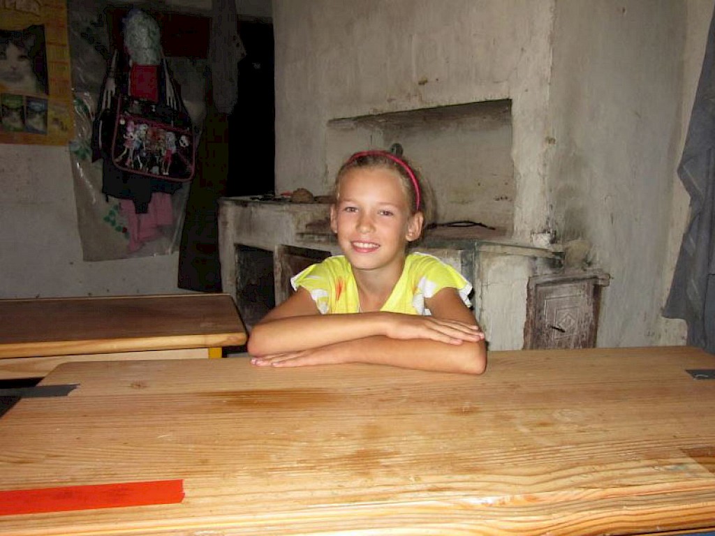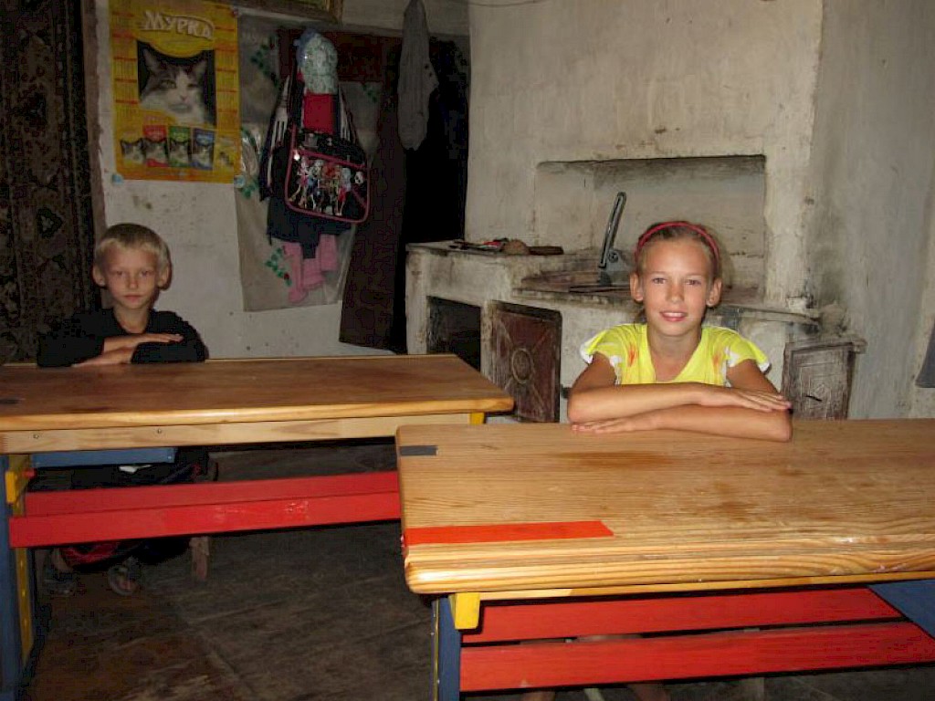 Als unser VW Bus vor der alten Hütte in Swetlowodsk hält, stürmen Sofia und Denis auf die Straße. Den ganzen Tag hatten sie auf diesen Augenblick gewartet. Seit dem frühen Morgen hatten sie einen Platz vorbereitet, auf dem ihr Schreibtisch stehen soll.