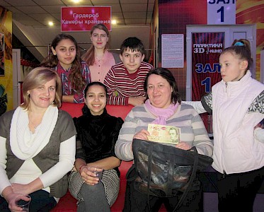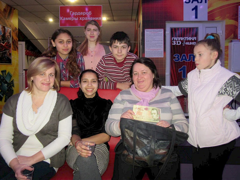 Hinter uns liegt ein spannender Sonntagmorgen. Unser Puppentheater wurde in eine Gemeinde in Krementschug eingeladen. Über 500 Zuschauer waren begeistert. Nun schlendern wir gemütlich durch die große Stadt. Da sind so viele Menschen, laute Autos.