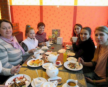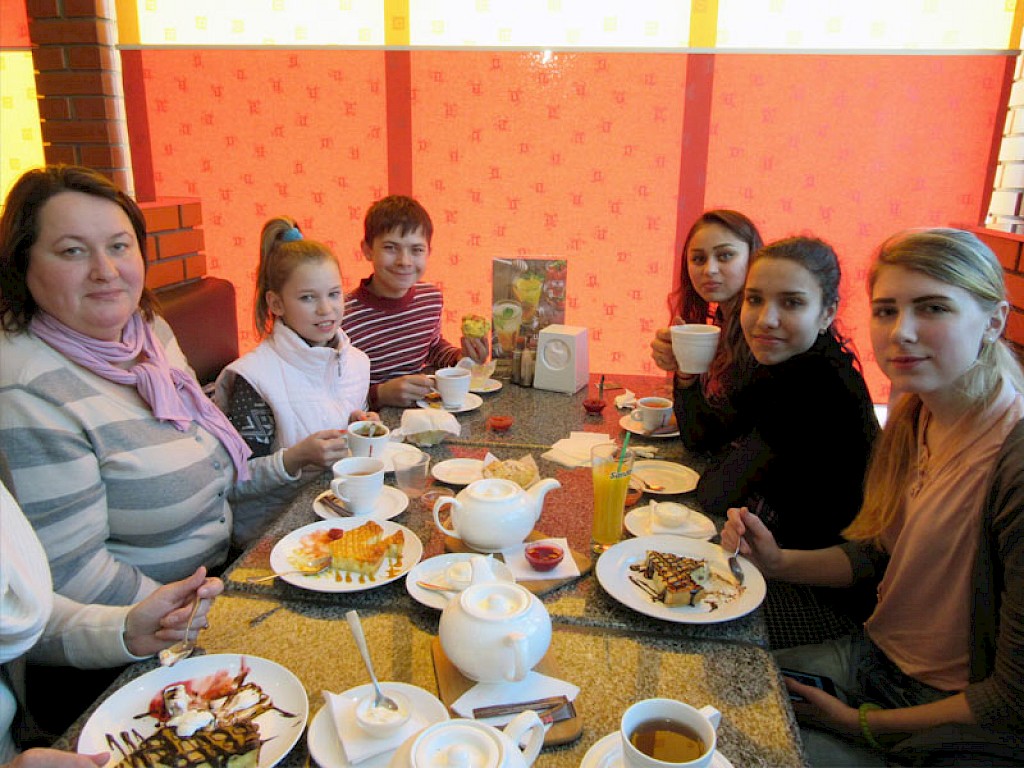 Zur Belohnung hat uns die Gemeinde einen Besuch in einer Cafeteria geschenkt. Unsere Puppenspieler sind sprachlos. Auf dem Heimweg sind alle ganz still. Da gibt es so viel zu verarbeiten. Und nun sind wir gespannt, wer uns als nächstes einlädt.