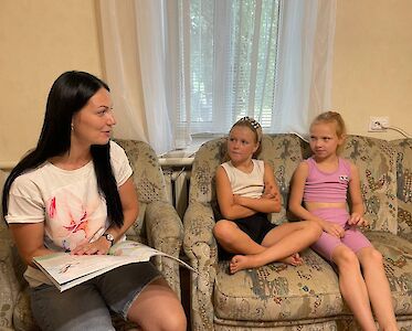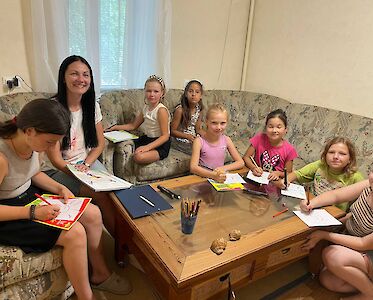 In unserem Zufluchtsort in Odariwka finden unterschiedliche Kindergruppen statt. Eine liebevolle Begrüßung, ein warmes Mittagessen, biblische Geschichten, Bastelarbeiten und Spiele erwarten die Kinder wenn sie zu uns kommen.
