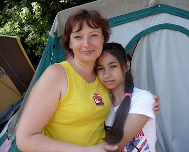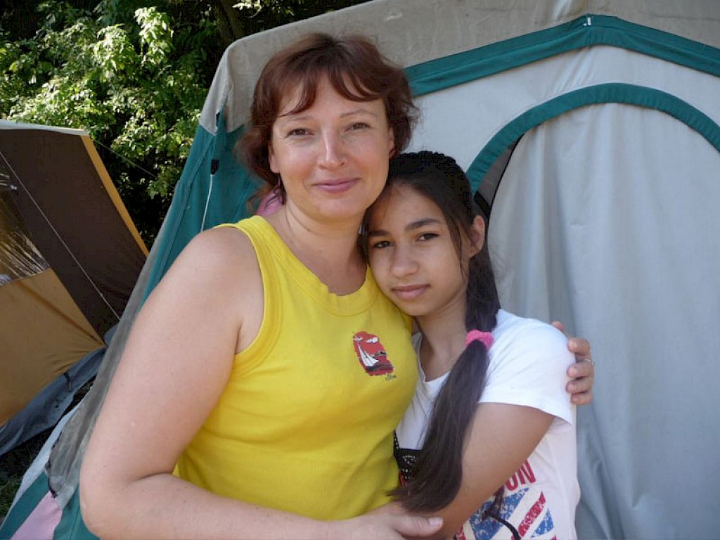 Aliona Lupaschenko, ein Zigeunermädchen, besucht unsere „Armenschule“. Am ersten Tag steht sie ein wenig Abseits und beobachtet das bunter Treiben im Lager. Die traumatischen Erlebnisse in ihrer Kindheit haben sie in die Isolierung geführt. Am zweiten Tag ist sie schon nicht mehr zu halten. Sie tobt mit den anderen Kindern herum und wir beten, dass Gott langsam damit beginnt, ihre inneren Wunden zu heilen.