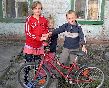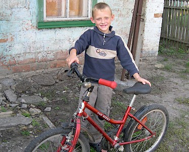 Denis kommt aus einer armen Familie, die sich natürlich kein Fahrrad leisten kann. Doch nach dem letzten Hilfsgütertransport konnten wir ihm seinen Wunsch erfüllen. Wir brachten ihm ein Fahrrad nach Grigororwka.