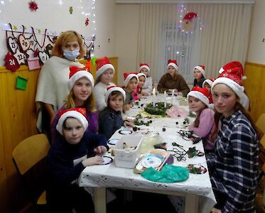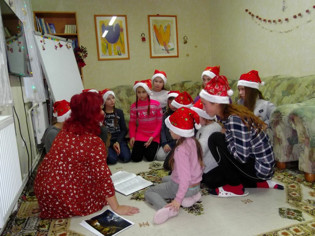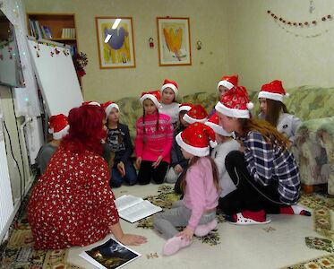 In der Zwischenzeit haben wir unser Haus festlich dekoriert. Weihnachtsmusik verbreitet eine warme Atmosphäre. Wika Gusenok, die diesen Zufluchtsort leitet, erzählt jeden Tag eine Geschichte, die unsere Gäste nach Bethlehem führt.
