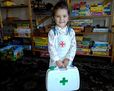 „Dürfen wir auch mit all diesen Spielsachen spielen?“ Vorsichtig stellt Nastja, ein kleines Roma Mädchen, die Frage, die sich wohl alle in diesem Augenblick gestellt haben. Und dann sie sie nicht mehr zu halten. Nastja hat bereits eine Puppe auf dem Arm. Zu Hause gibt es kaum Spielsachen.