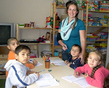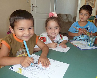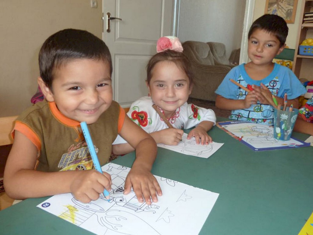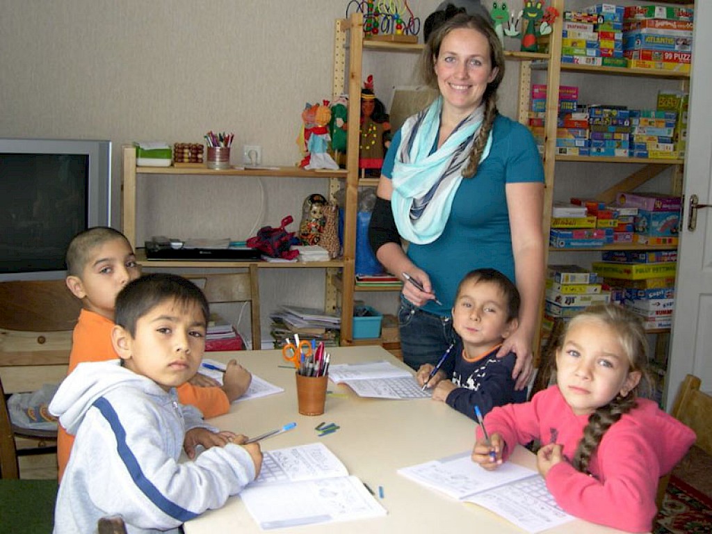 „Kinder, der Unterricht fängt an!“ Ganz aufgeregt flattern die „Spatzen“ in ihre Unterrichtsgruppen, die Kleinen zu Wera Beresniuk und die Großen zu Lena Uchnal. Wir sind zwar eine große Familie, in der wir zusammen essen, zusammen eine Geschichte hören, zusammen spielen, doch im Unterricht müssen sie geteilt werden.