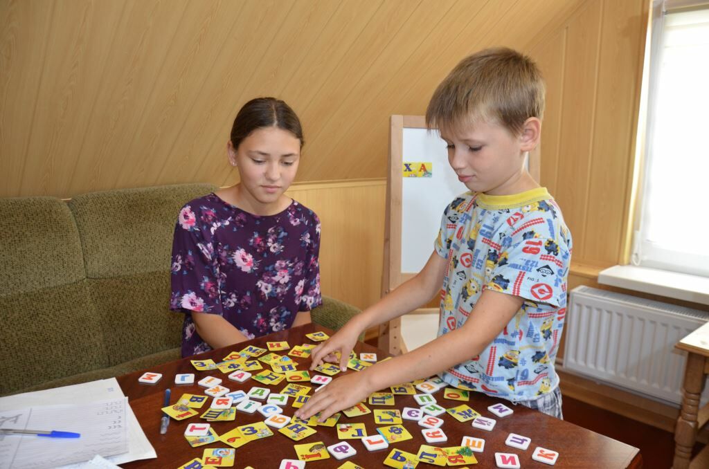 „Wo ist Tamara? Sie wollte mir doch zeigen, wie man eine 8 schreibt.“ Jegor konnte wegen des Krieges keinen Kindergarten besuchen. Er kommt aus einer großen Familie und seine Eltern haben ihn nicht auf die Schule vorbereitet. So wurde Tamara, eine Jugendliche aus unserem „Tageskinderheim am See“, seine Lehrerin. Sie hat Jegor beigebracht, wie die verschiedenen Farben heißen. Er weiß den Unterschied von klein und groß, kann einfache geometrische Figuren zeichnen. Tamara ist mit Begeisterung bei der Sache, kommt früh am Morgen, um sich auf den Unterricht vorzubereiten. „Ich fühle mich wie eine richtige Lehrerin!“, erzählt sie. Sicherlich werden ihr die Erfahrungen, die sie beim Unterrichten macht, später nützlich sein.