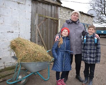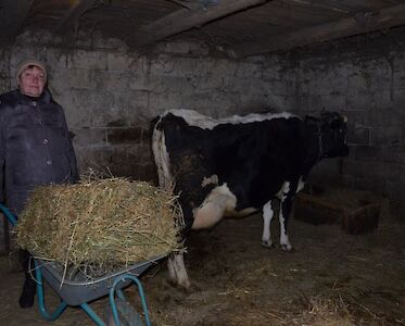 Die Witwe, die jahrelang an ein Leben in Einsamkeit gewöhnt war weiß, dass es im Frühjahr am wichtigsten ist, eine Kuh mit nahrhaftem Futter zu versorgen. Wir haben ihr, dank Spendengeldern, einen Wagen voller Heu geschickt. Sweta war so dankbar und konnte wieder aufatmen!