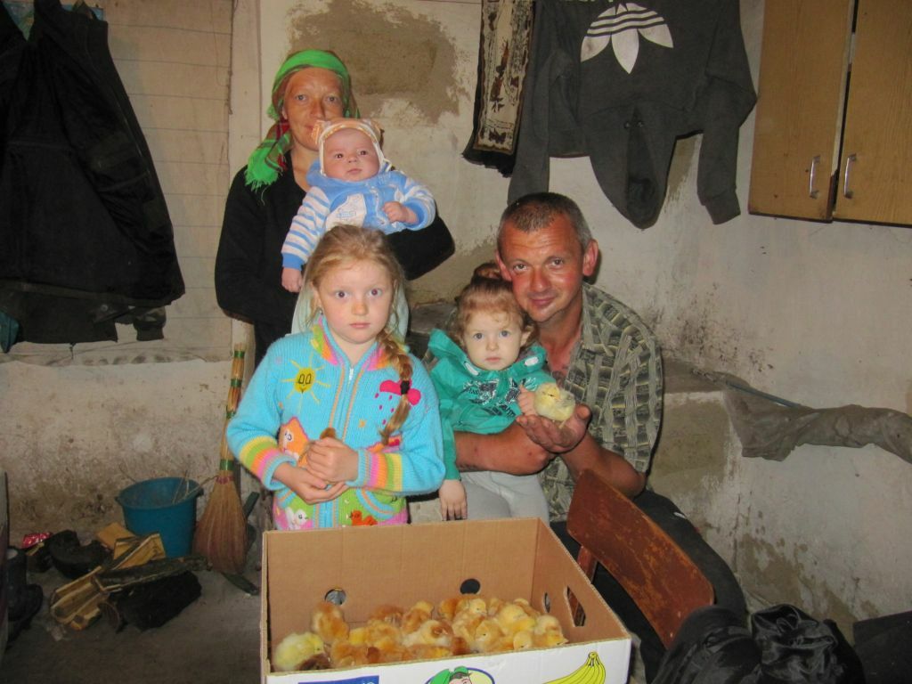Luda Slobodianik leitet die Hilfsprogramme von „Brücke der Hoffnung“ in der Ukraine. Heute hat sie 100 Küken für Familie Ponomar auf einem Bauernmarkt gekauft. Katja, die Mutter der Familie, fällt es in diesen Tagen schwer, mit ihren fünf Kindern über die Runden zu kommen.