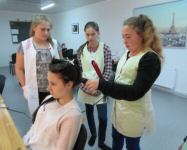 In unserer „Lehrwerkstatt für Maniküre“ bieten wir einen Kurs für Mädchen an, in dem Darina Panassenko ihnen erklärt, wie sie ihre Haare richtig pflegen können und welche unterschiedlichen Frisuren es gibt.