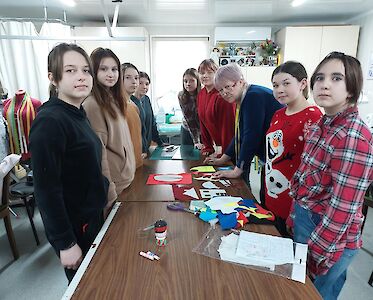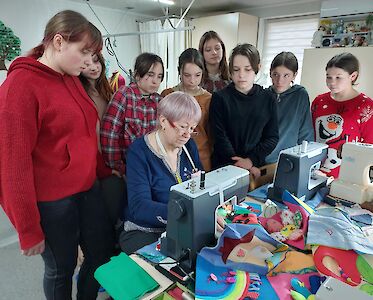 Viele Menschen sind im Verlauf des Krieges nach Switlowodsk geflüchtet, auch Ira. Sie kam aus Lyman, hat ihr Zuhause verloren und befand sich in einer schwierigen Situation. Ira näht und strickt gerne. Wir luden sie in unsere Lehrwerkstatt ein, um sich von ihren schweren Gedanken abzulenken. Hier bekam sie neue Hoffnung.