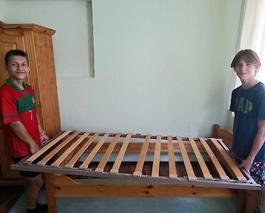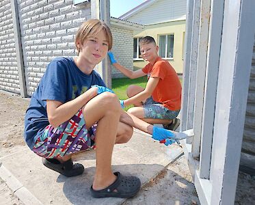 Vor kurzem hatten unsere Jungen Missionare einen Arbeitseinsatz. In unserer Villa Regenbogen wohnen mehrere junge Mädchen, die eine Ausbildung oder ein Studium in der Nähe von Switlowodsk absolvieren. Während zwei Jungen ein Bett für ein neues Mädchen aufstellten, strichen andere Jugendliche das Tor mit hellblauer Farbe. Mit Feuereifer waren alle bei der Sache und arbeiteten hart. Zum Abschluss fand ein geselliges Beisammensein im Garten von Villa Regenbogen statt. Die Pizza schmeckte allen sehr gut!