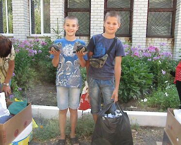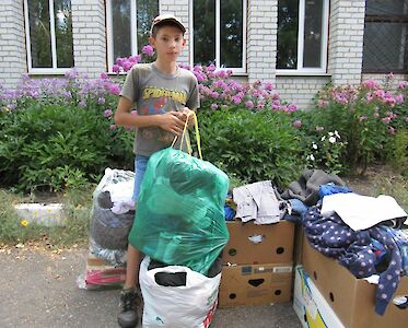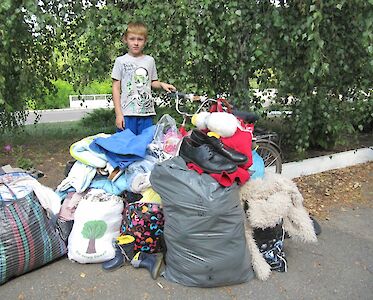 Heute haben wir einen Einsatz mit Hilfsgütern in dem „Vergessenen Dorf“ Mironowka. Die Mütter aus ganz besonders armen Familien, die wir zu dieser Aktion eingeladen haben, sind natürlich froh, dass wir Winterkleidung mitgebracht haben.
