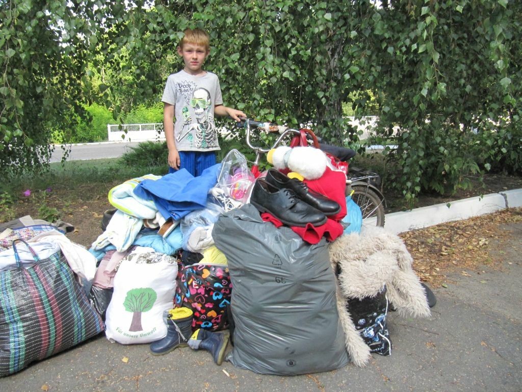 Heute haben wir einen Einsatz mit Hilfsgütern in dem „Vergessenen Dorf“ Mironowka. Die Mütter aus ganz besonders armen Familien, die wir zu dieser Aktion eingeladen haben, sind natürlich froh, dass wir Winterkleidung mitgebracht haben.