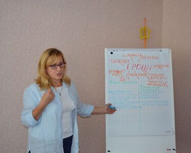 In der Ukraine herrscht Krieg, die Wirtschaft des Landes ist zerstört. Die finanzielle Instabilität betrifft viele Ukrainer. Die meisten Eltern unserer Kinder, die wir betreuen, haben kaum finanzielle Grundkenntnisse. Sie wissen nicht, wie man sein Geld vernünftig ausgibt oder spart. Die Menschen arbeiten oft hart und geben ihren Verdienst dann in kurzer Zeit aus, leihen sich Geld oder nehmen Kredite auf.