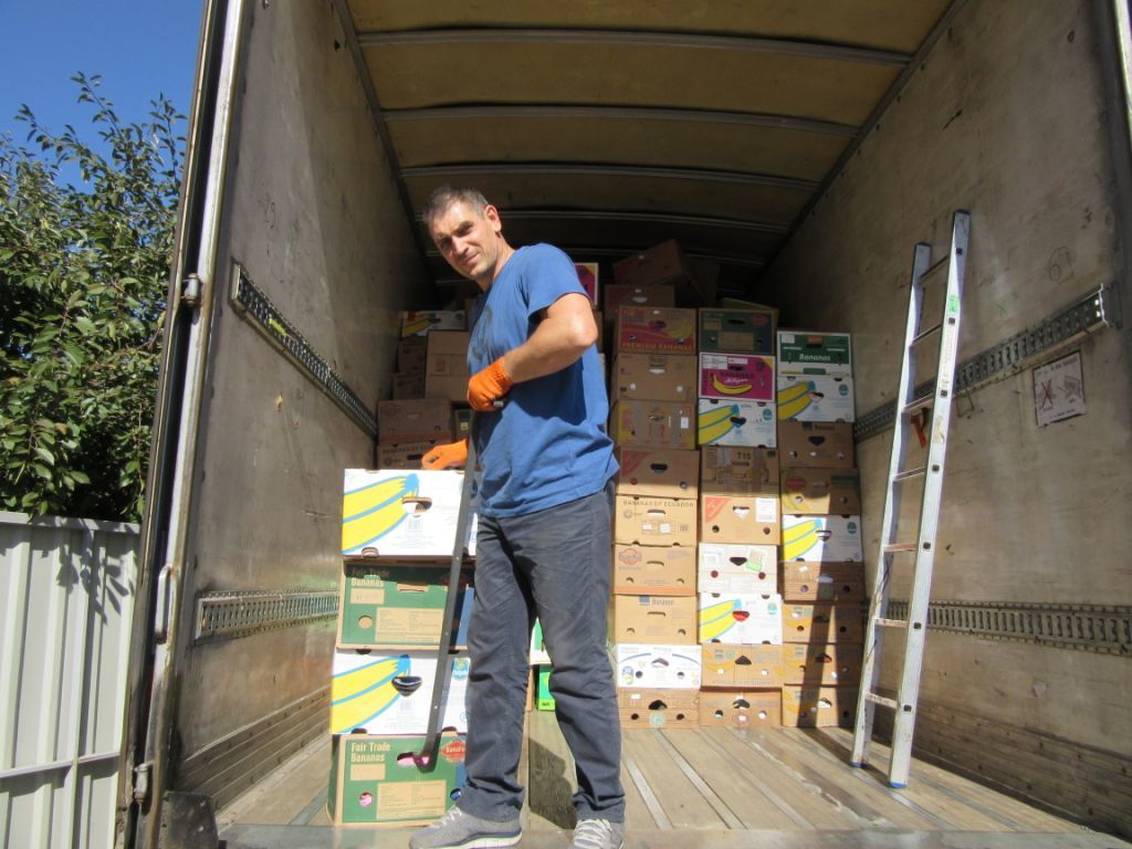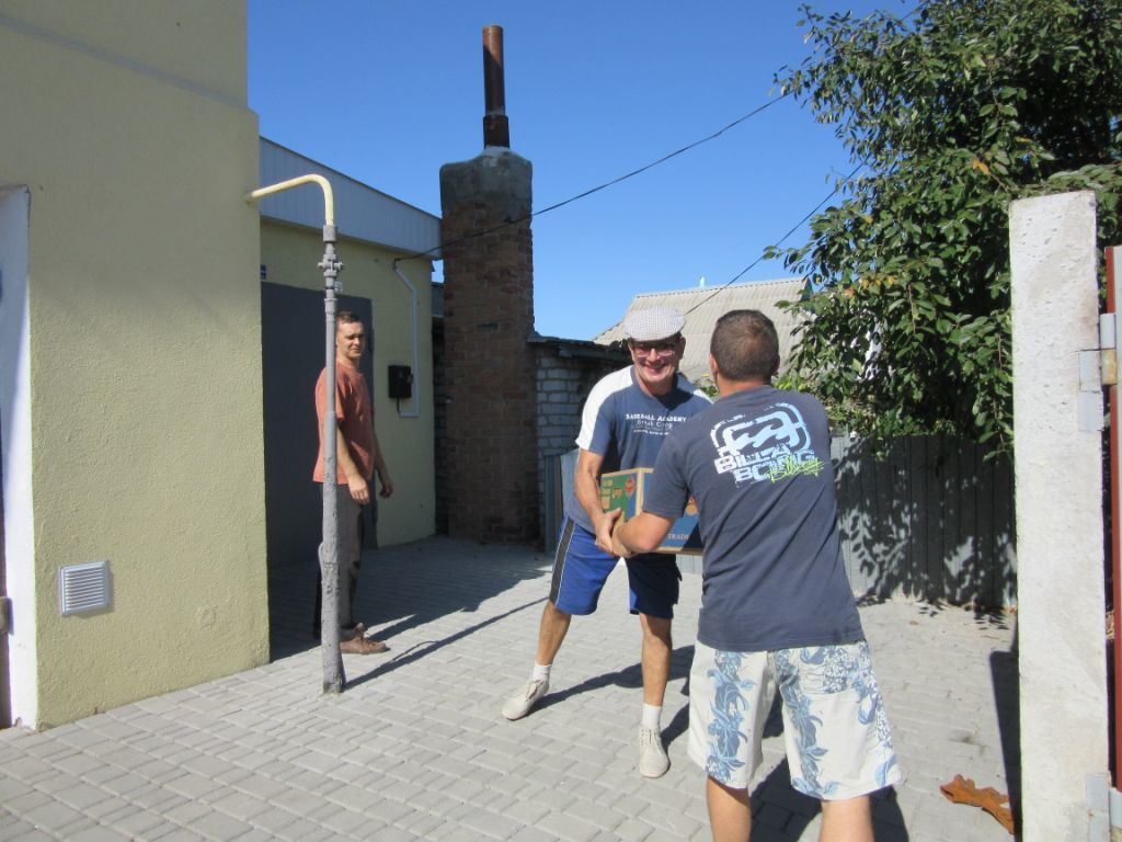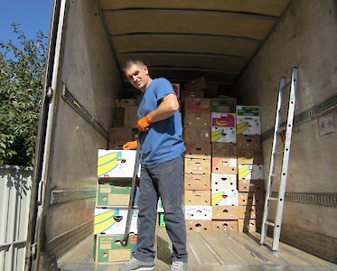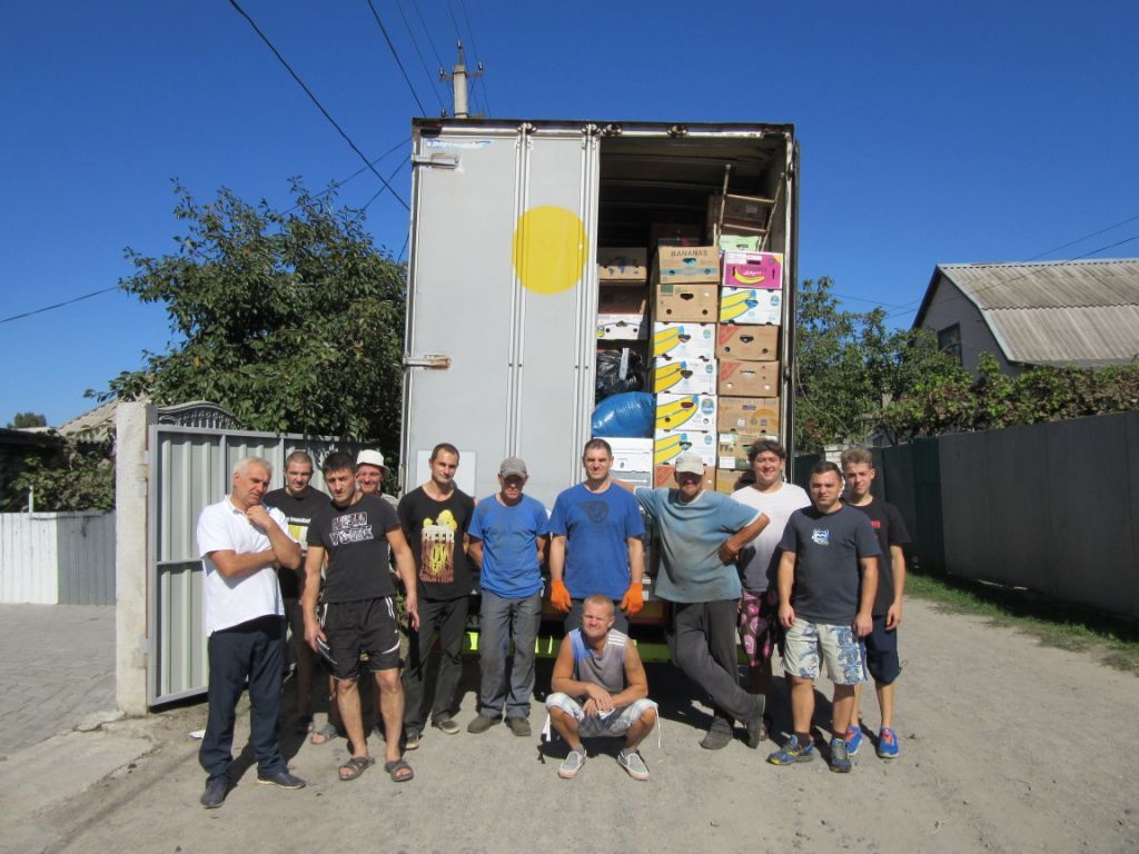 Am 20. September war es endlich so weit. Unser 34 Tonnen LKW traf bis zur Decke mit 1.800 Bananenkartons beladen bei uns in Swetlowodsk ein und wurde von vielen Helfern, unter der Aufsicht von einem Zollbeamten in unsere Lagerhalle abgeladen, die hinterher von dem Beamten versiegelt wurde. Danach begann die harte Arbeit mit den Dokumenten für die Behörden. Es dauert immer einige Wochen, bis die Hilfsgüter zur Verteilung freigegeben werden.