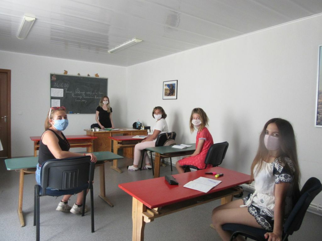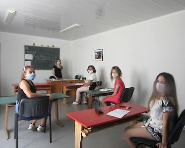 Für die Teilnehmerinnen ist es ein zweiter Kurs, ein Aufbaukurs. Zuerst werden natürlich Dinge aus dem ersten Kurs aufgefrischt. Nach drei Monaten Quarantäne sind die Mädchen natürlich gleich eifrig bei der Sache. Draußen sind es 36 Grad, aber in unserem Raum haben wir eine Klimaanlage.