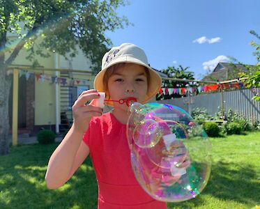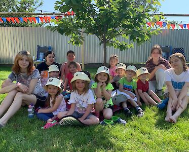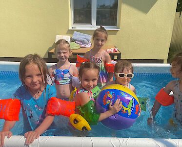 Im Garten warteten Spielgeräte, bunte Dekorationen und ein Swimming Pool. Unsere Gäste konnten ihr Glück kaum fassen. Das Tagesthema lautete: „Gott kann alles tun! Er hat die ganze Welt erschaffen.“