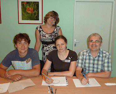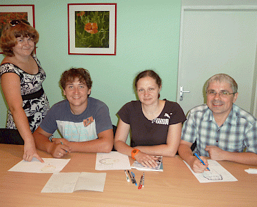 Seit einigen Wochen kommt eine junge Lehrerin aus einer Schule in Swetlowodsk und unterrichtet die Mitarbeiter, die dazu fähig sind, in Englisch.