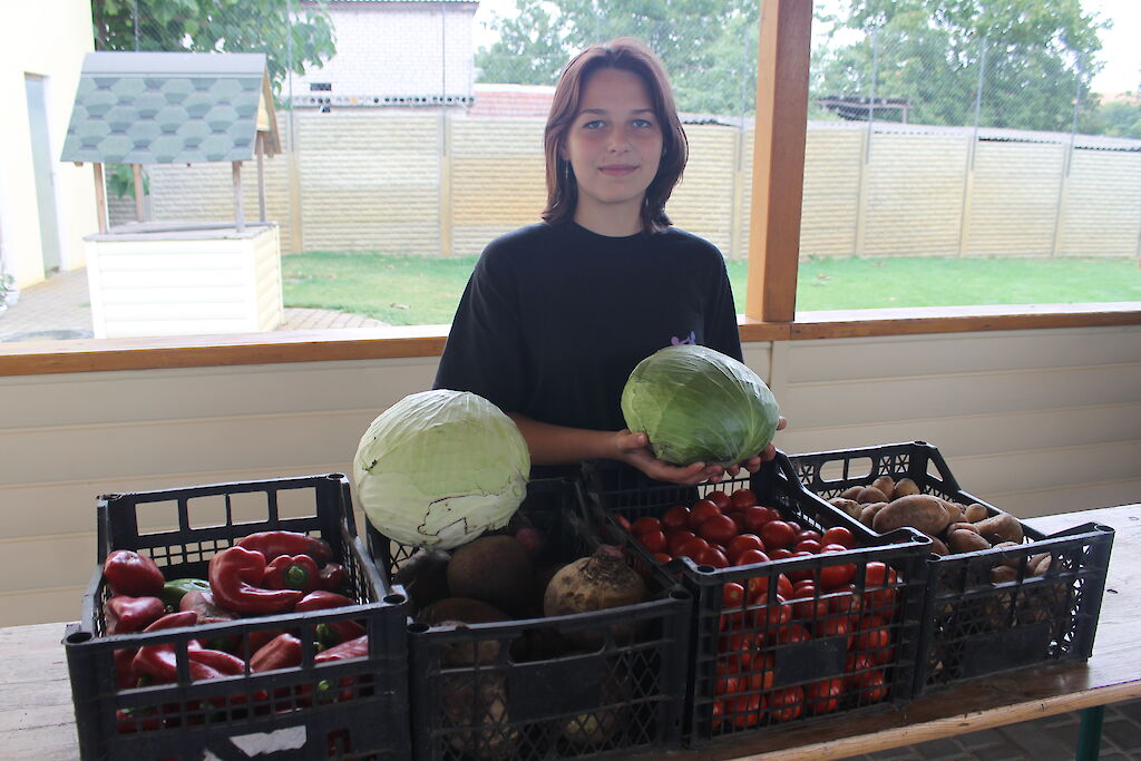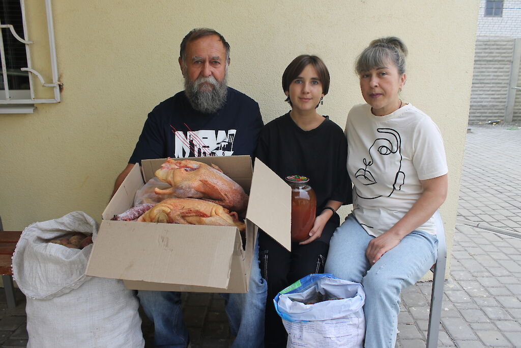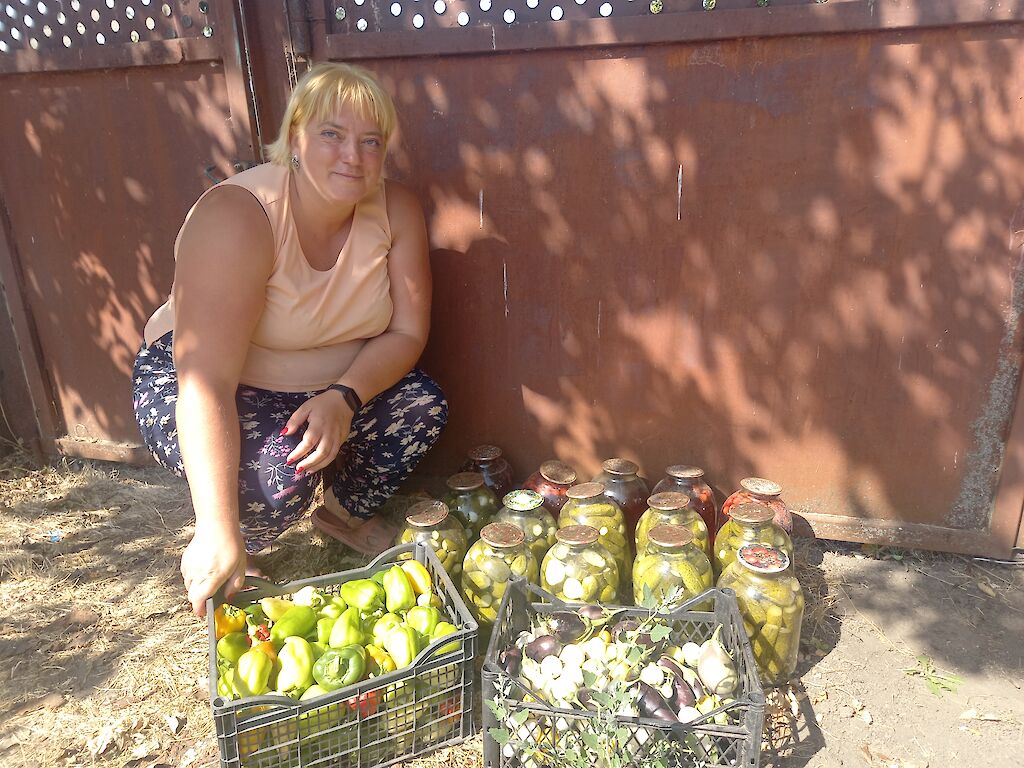 „Guten Tag! Mein Name ist Nadja. Ich komme aus Andrusiwka. Erinnern Sie sich, dass ich Sie im Frühjahr bat, mir beim Kauf von Saatgut und Gemüsesetzlingen zu helfen? Meine Familie ist sehr arm. Meine Kinder kann ich im Winter nur ernähren, wenn ich im Sommer hart auf dem Feld arbeite. Ich habe eine Menge Tomaten, Paprika und Gurken in meinem Garten, dank Ihrer Hilfe. Es war sehr heiß in diesem Jahr, aber wir konnten trotzdem ernten. Einen Teil davon möchte ich Ihnen abgeben. Ich weiß, dass Sie in Switlowodsk viele bedürftige Menschen unterstützen.“