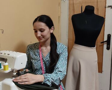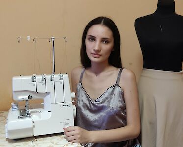 Jesfir kommt aus Boschedariwka, hat schon als kleines Mädchen gerne genäht. Vor zwei Jahren bekam sie von uns eine Nähmaschine und einen Onlinenähkurs geschenkt. Letztes Jahr zog sie nach Ushgorod, um dort eine Ausbildung zur Näherin zu beginnen. Vor kurzem machte sie ein Praktikum in einer Nähfabrik.