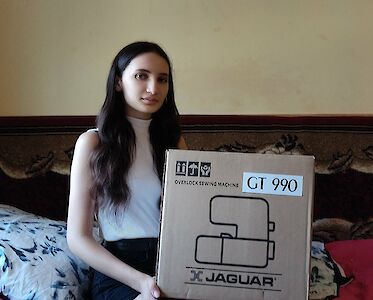Dank der Unterstützung ihrer Patin in Deutschland, ist Jesfirs Traum wahr geworden. Sie bekam eine Overlock-Maschine geschenkt. Mit der neuen Maschine kann sie Stoffe zusammennähen, versäubern und präzise abschneiden. Jesfir näht Schlafanzüge für ihre Freundinnen und kann mit dem Verkauf etwas Geld verdienen. Das Mädchen ist unendlich glücklich und dankbar!