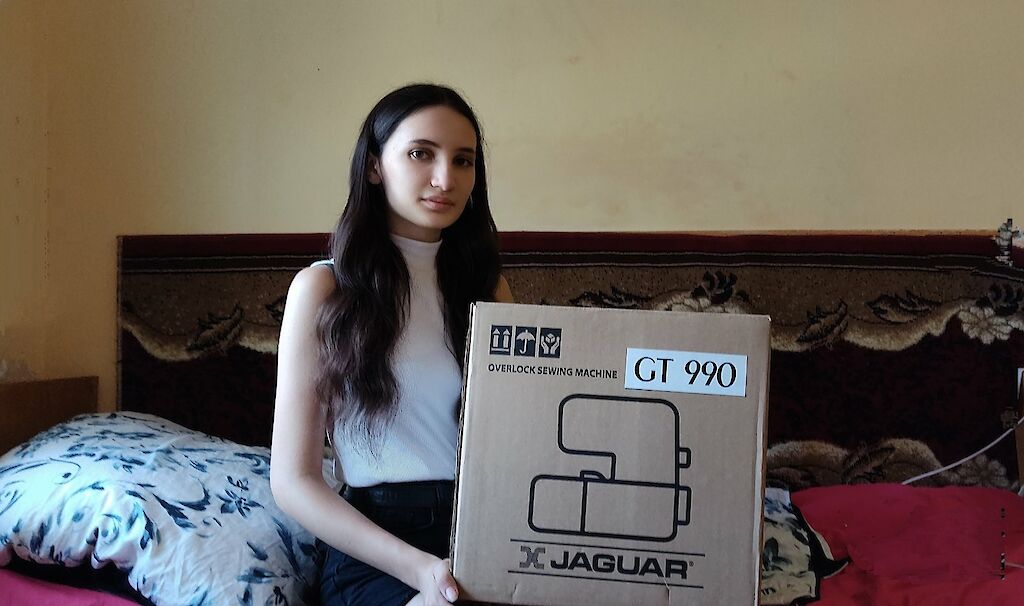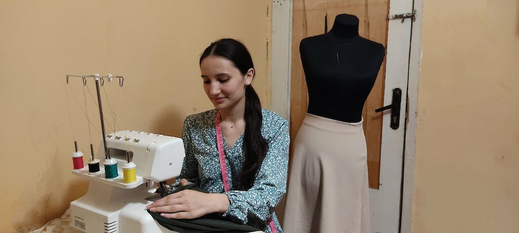 Jesfir kommt aus Boschedariwka, hat schon als kleines Mädchen gerne genäht. Vor zwei Jahren bekam sie von uns eine Nähmaschine und einen Onlinenähkurs geschenkt. Letztes Jahr zog sie nach Ushgorod, um dort eine Ausbildung zur Näherin zu beginnen. Vor kurzem machte sie ein Praktikum in einer Nähfabrik.