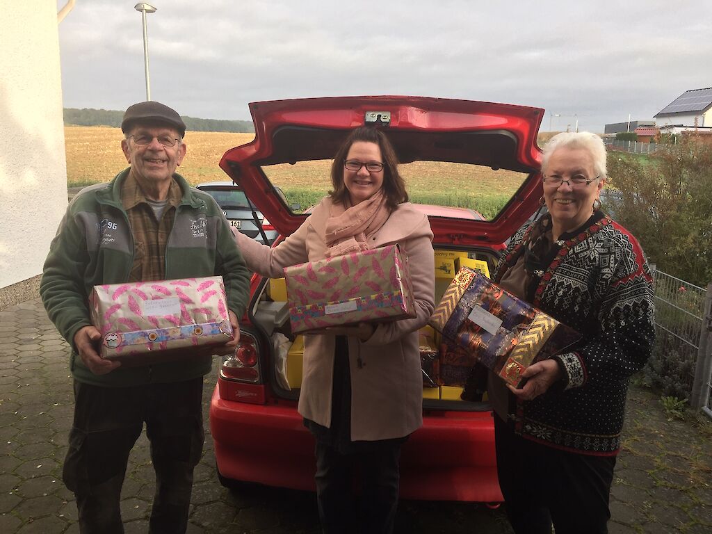 Fast unermüdlich sind Helga Ujma und Anton Krix aus Waldsolms unterwegs, um auf Flohmärkten und in Geschäften nach Ermutigungsgeschenken zu suchen, um „Hoffnungsboxen“ zu packen. Teilweise kommt man bei Frau Ujma Zuhaue gar nicht mehr die Treppe rauf, weil alles voller Paketen steht, erzählt sie anschaulich.