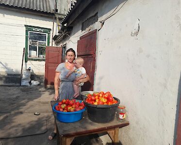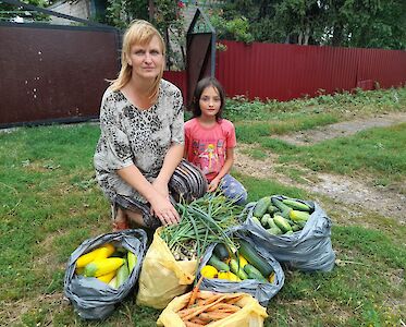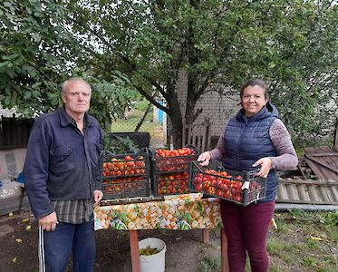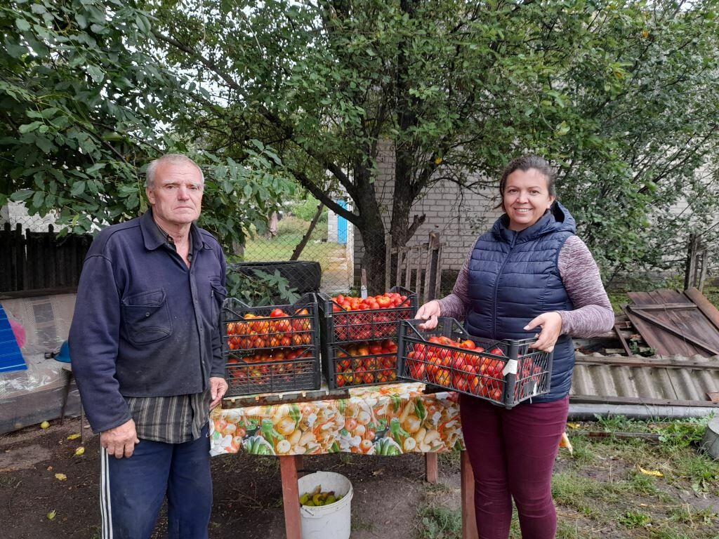 In diesen Wochen sind wir aber auch unterwegs, um einen Teil der Ernte an bedürftige Menschen zu verteilen, die keine Kraft haben im Garten zu arbeiten. Wir sind froh, dass wir neben Obst und Gemüse genug Hilfsgüter für unsere Winteraktionen habe, die unser LKW vor einigen Tagen nach Odarjewka gebracht hat.
