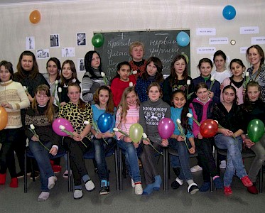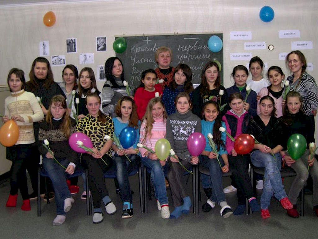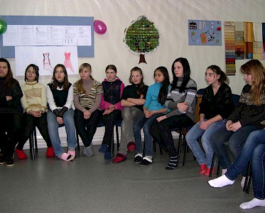 Mit großem Interesse kommen die Mädchen in den zweiten Stock zu unserer “Lehrwerkstatt für Mädchen“. Es riecht nach frisch gebackenem Kuchen, bunte Ballons und Poster schmücken die Wände. Heute findet die Eröffnung des „Supergirl Clubs“ statt. Die behagliche Atmosphäre erleichtert den Einstieg in die Begrüßungsrede für die Mädchen. „Jede von euch ist wie eine wunderschöne Blume. Blumen können ganz unterschiedlich sein.“ – beginnt Lena Uchnal und zeigt den Mädchen eine Kastanienblüte. Jede von ihnen möchte gerne im übertragenen Sinne eine außergewöhnlich schöne Blume sein. Wie können wir den Mädchen helfen, ihre Ziele zu erreichen?