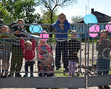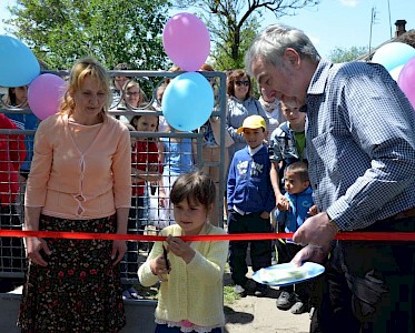 Heute ist er da, der große Tag, an dem das erste Stockwerk von unserem „Zufluchtsort“ in Schorsk feierlich eröffnet wird. Viele Kinder sind gekommen. Nachbarn wundern sich, was da wohl passiert. Dann rollen drei Fahrzeuge vor das Gebäude. Alle Mitarbeiter von „Brücke der Hoffnung“ aus Swetlowodsk sind angereist, um an der Eröffnungsfeier teilzunehmen.